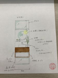 こちらは玄関手洗いのペンダントライトと揃えるような形で