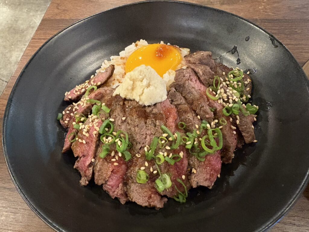 ステーキ丼。肉のうまみがしっかりしていて美味しい!