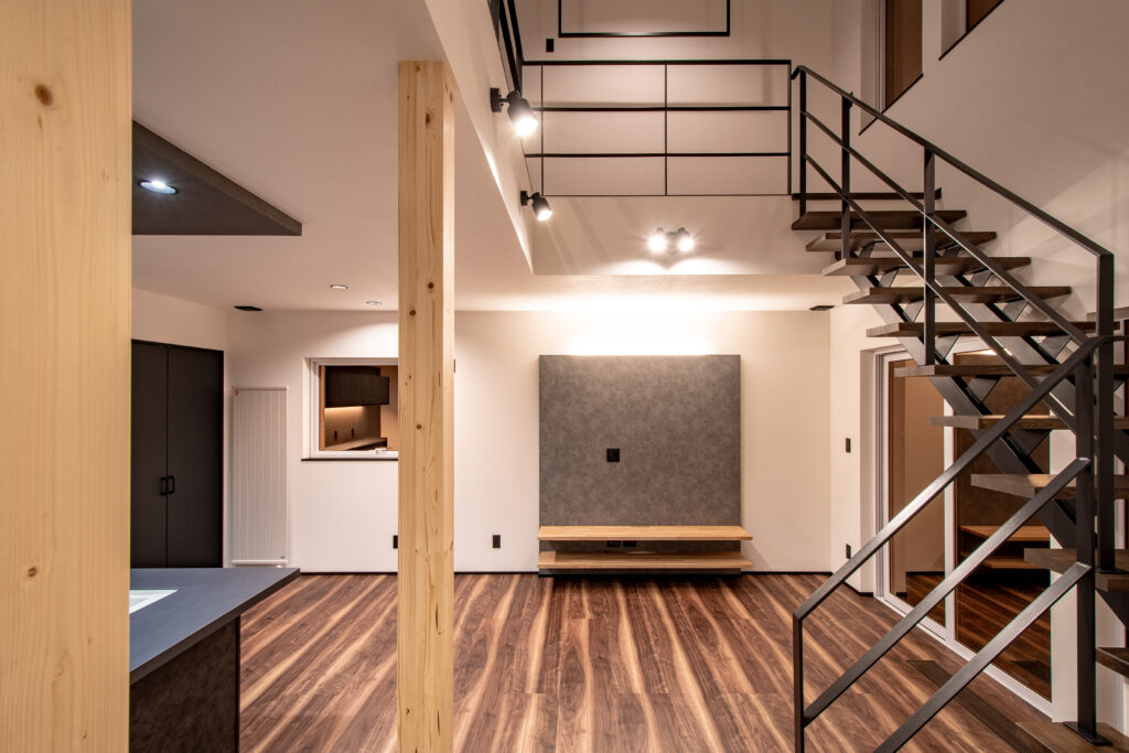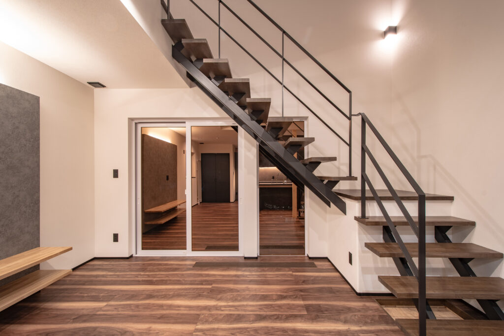 階段そのものが空間の主役となるような、存在感のある仕上がりです。