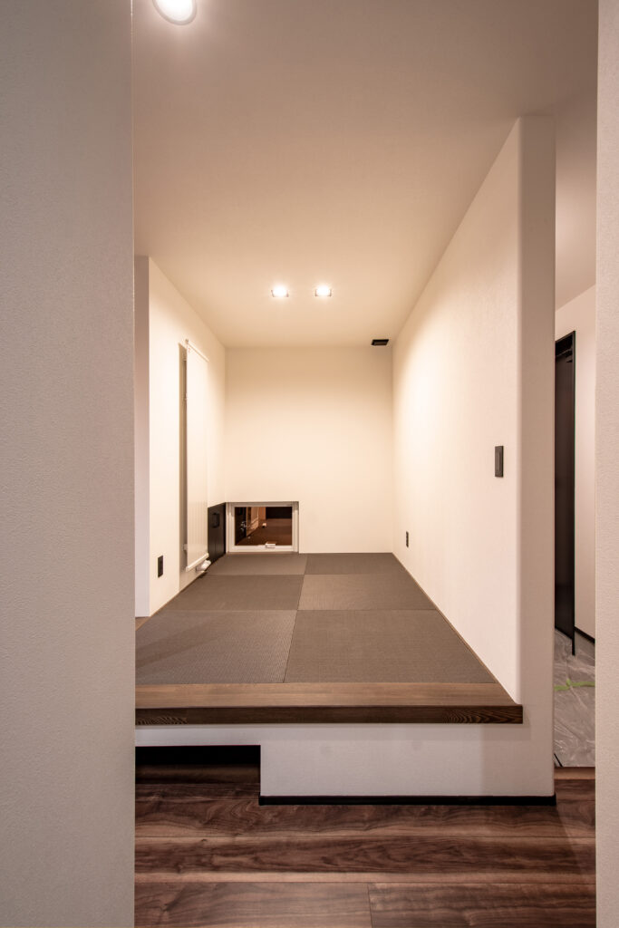ブラックメインの空間に緑の畳がやや浮いてしまう印象であったため、