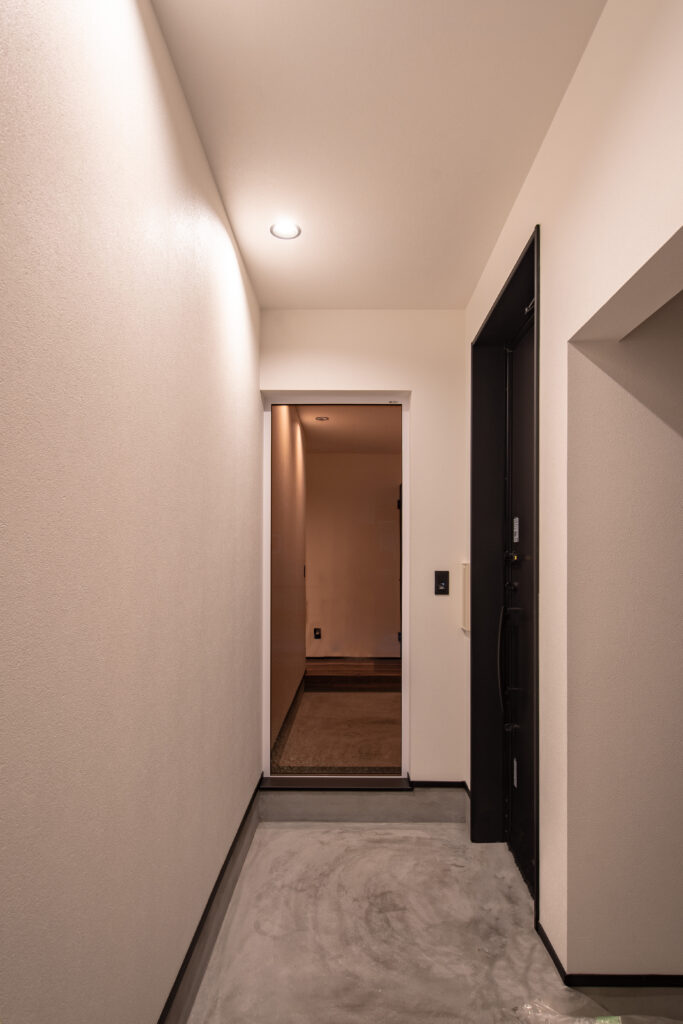 さらに、玄関には間接照明を組み込み、夜にはやわらかい光が玄関を包み込みます。