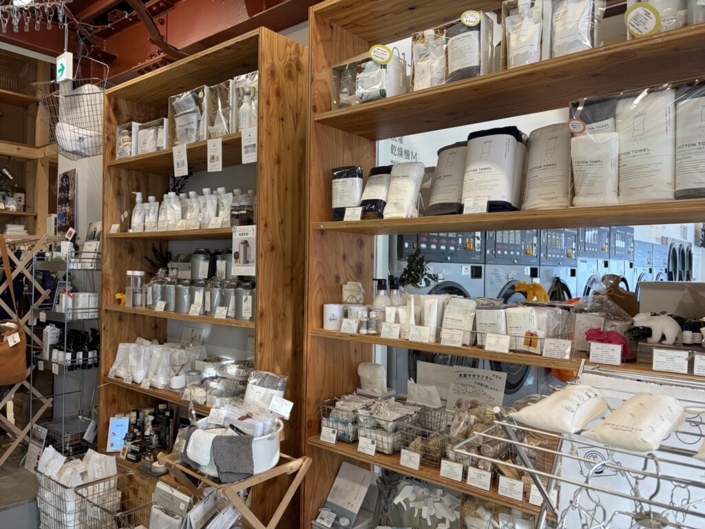 オリジナル商品やランドリーグッズはもちろん、雑貨の販売も。