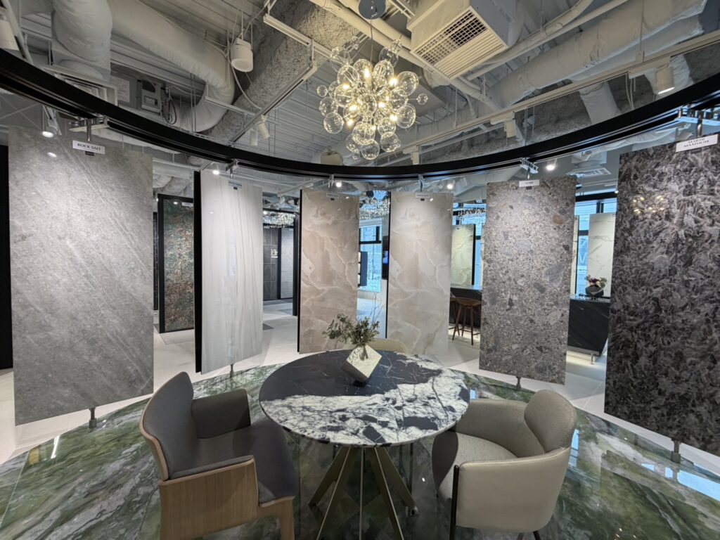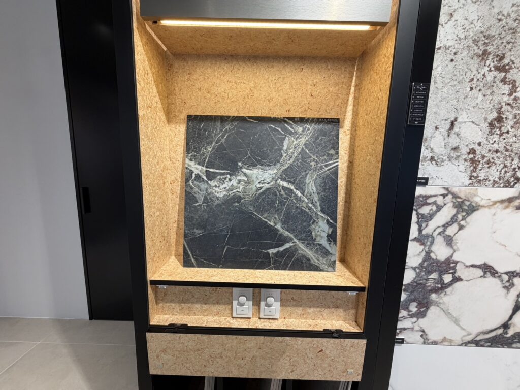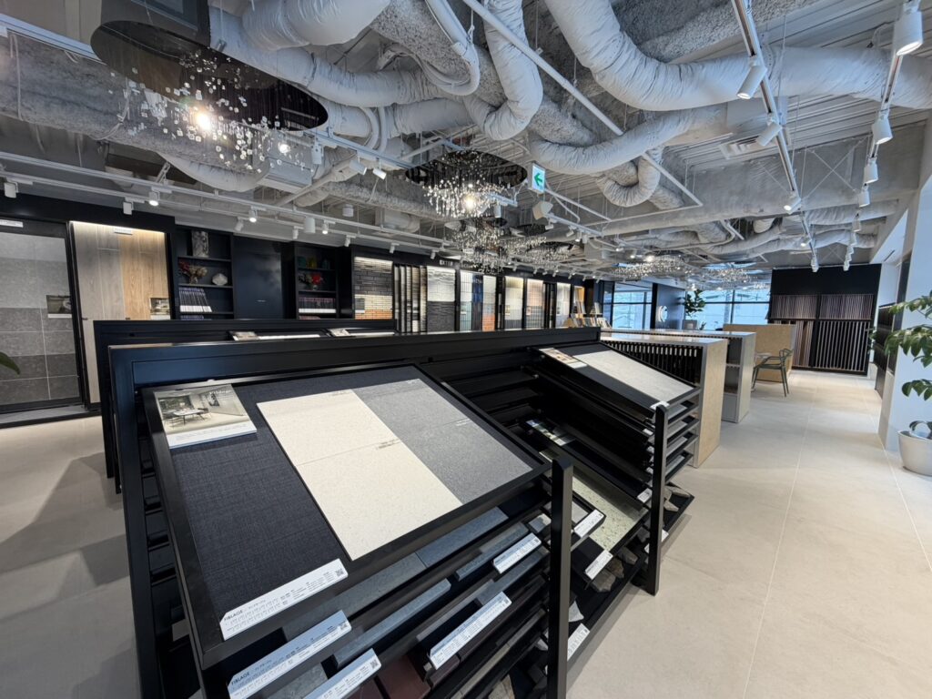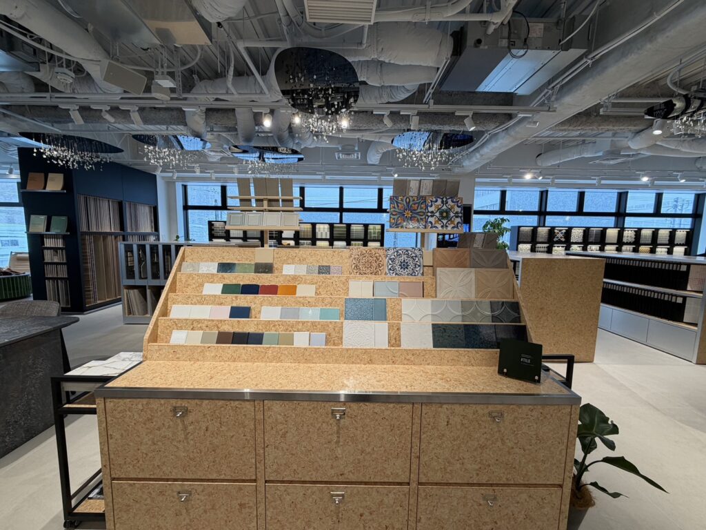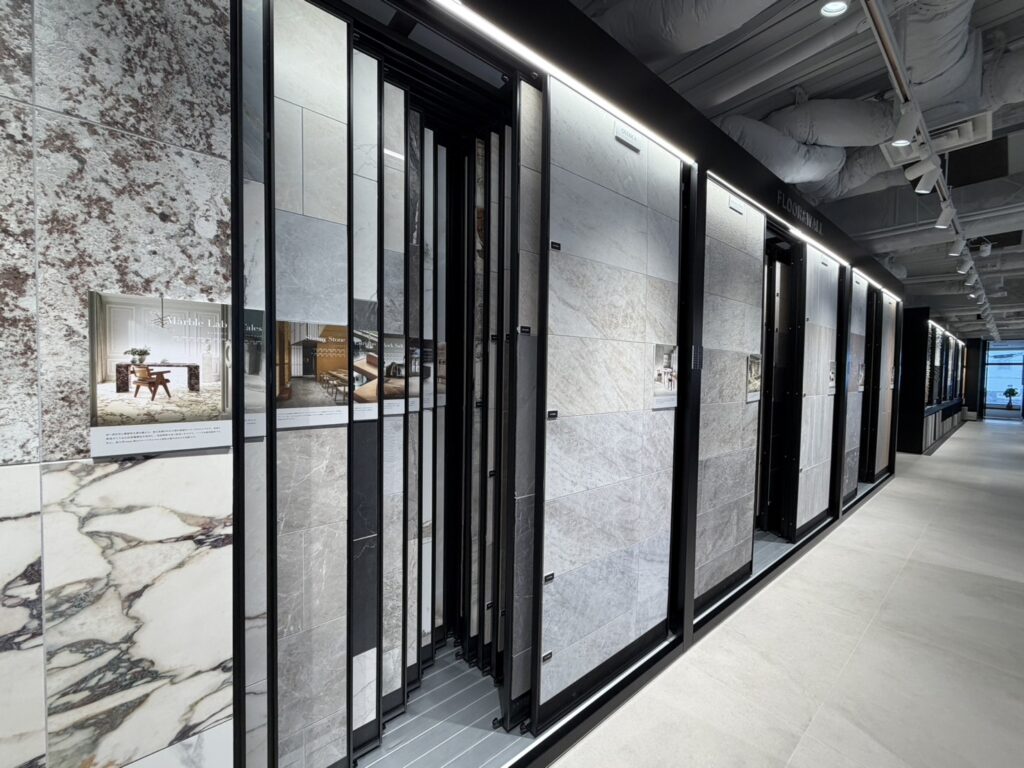ショールーム入ってすぐ横には大判タイルの展示スペース。