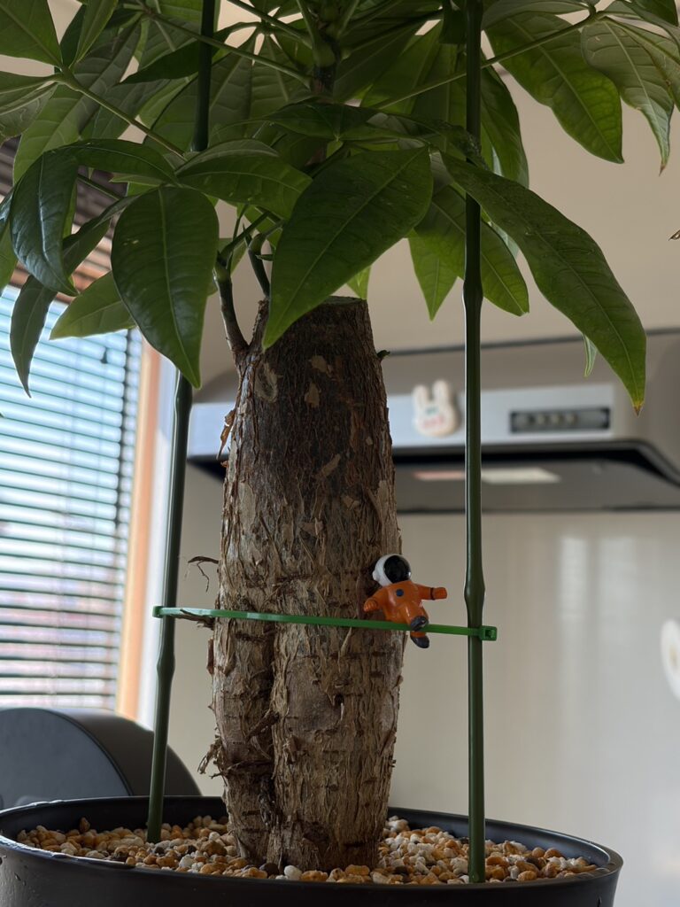 ちなみに、わが家のパキラには小さな宇宙飛行士が住み着いていて、ジャングルを探検中。