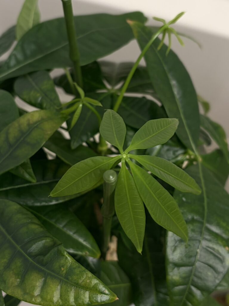 最近仲間入りしたパキラも、わが家の環境に慣れてくれて