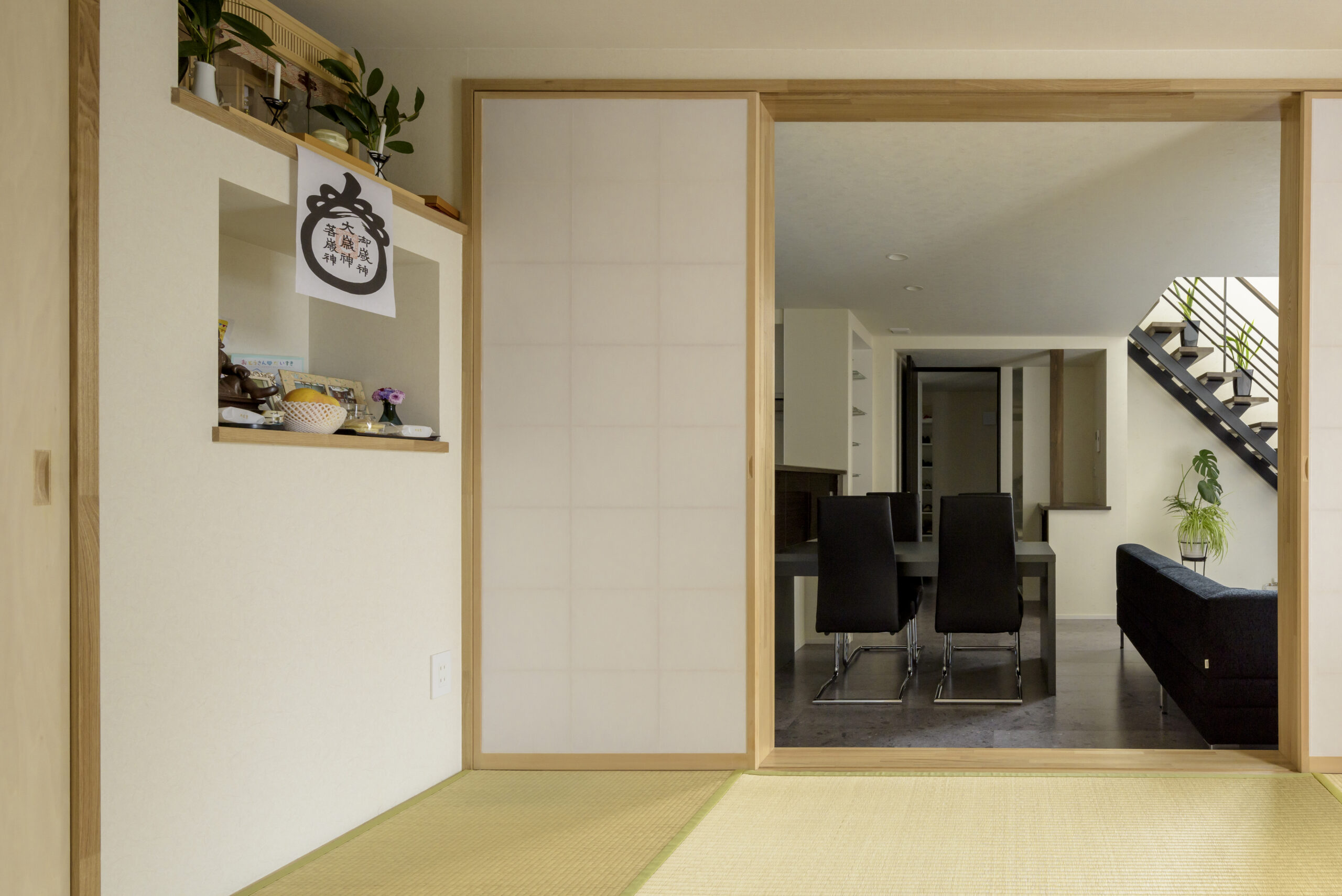 施工事例 大きな窓の家【石狩市樽川】 ガルバ、塗り壁、木の3素材で構成される外観。大きな窓に灯りがともる夜の景色も風情がある 玄関は家族用と来客用をセパレート。家族用には靴とコートのクロークを併設。 吹き抜けの開放感と低く抑えた天井が対照的なリビング。モノトーンを基調に、ホテルライクなインテリアに。 ダイニングテーブルの高さに合わせ、キッチンの対面側の棚を造作。テーブル横に飾り棚も設置。 キッチンに並列させて洗面所と選択コーナーを配置。水回りの仕事がまとめてできる効率的な導線。 気軽にお参りできる神棚を和室の一角にさり気なく設置。 LDKの隣にある小上がり和室。お子さんが遊ぶ姿をキッチンからも見渡せます。 ダイナミックな吹き抜けと、大きな窓に沿うように架かる鉄骨階段。 大きな十字の枠が印象的な窓は、外観のアクセントにも。 ガルバ、塗り壁、木の3素材で構成される外観。大きな窓に灯りがともる夜の景色も風情がある 玄関は家族用と来客用をセパレート。家族用には靴とコートのクロークを併設。 吹き抜けの開放感と低く抑えた天井が対照的なリビング。モノトーンを基調に、ホテルライクなインテリアに。 ダイニングテーブルの高さに合わせ、キッチンの対面側の棚を造作。テーブル横に飾り棚も設置。 キッチンに並列させて洗面所と選択コーナーを配置。水回りの仕事がまとめてできる効率的な導線。 気軽にお参りできる神棚を和室の一角にさり気なく設置。 LDKの隣にある小上がり和室。お子さんが遊ぶ姿をキッチンからも見渡せます。 ダイナミックな吹き抜けと、大きな窓に沿うように架かる鉄骨階段。 大きな十字の枠が印象的な窓は、外観のアクセントにも。 その他の施工事例 ダンコたる決意のある家【石狩市樽川】 緑あふれる家族だんらんの家【小樽市花園】 暮らしやすさを美しくデザインした「自分仕様」の住まい 札幌市手稲区Tさん ブラックで魅せる家【北区あいの里】 薪ストーブのあるBASEな家【石狩市花川北】 小上がり階段とバルコニーと庭のある暮らし【札幌市清田区】
