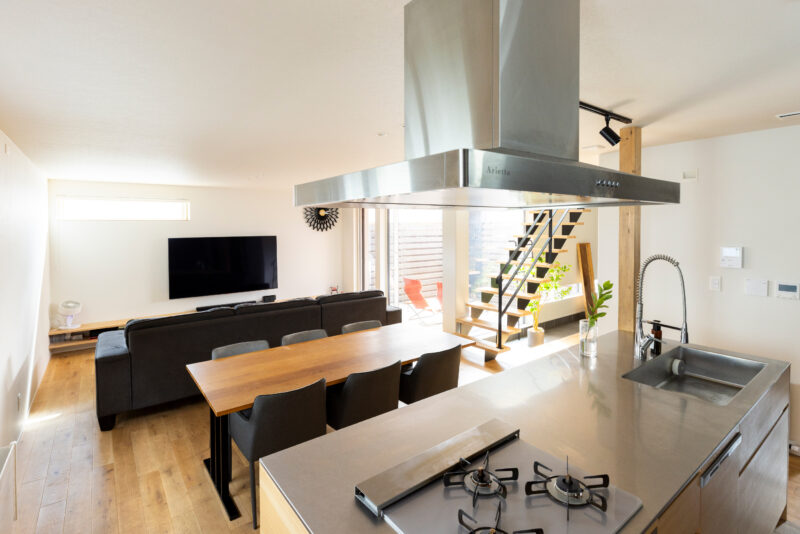 施工事例 暮らしやすさをデザインした家【札幌市手稲区】 幅広ブラックのガルバリウムでスタイリッシュに仕上がった外観。 吹き抜けにスケルトン階段を配した、明るく開放感のある玄関ホール。 ゲストも使える造作洗面。背面の造作吊戸棚には、底からタオルが引き出せるよう穴あけ加工しています。 アメリカンサイズのソファーを置いても余裕がある広々としたLDK。 アイランドキッチンは、木製オーダーキッチンを扱うインパクト社のもの。背面収納はオリジナルの造作です。 キッチン・ダイニングテーブル・リビングスペースが縦並びになるゾーニング。 リビングとホールに面したコーナーにつくられたウッドデッキは、セカンドリビングのようにも使えます。 大きな窓からたっぷりと光を取り入れつつ、木塀で視線を遮ったプライベート空間。 幅広ブラックのガルバリウムでスタイリッシュに仕上がった外観。 吹き抜けにスケルトン階段を配した、明るく開放感のある玄関ホール。 ゲストも使える造作洗面。背面の造作吊戸棚には、底からタオルが引き出せるよう穴あけ加工しています。 アメリカンサイズのソファーを置いても余裕がある広々としたLDK。 アイランドキッチンは、木製オーダーキッチンを扱うインパクト社のもの。背面収納はオリジナルの造作です。 キッチン・ダイニングテーブル・リビングスペースが縦並びになるゾーニング。 リビングとホールに面したコーナーにつくられたウッドデッキは、セカンドリビングのようにも使えます。 大きな窓からたっぷりと光を取り入れつつ、木塀で視線を遮ったプライベート空間。 その他の施工事例 縦格子の階段がある家【札幌市東区東苗穂】 アトリエのある家【札幌市白石区北郷】 音楽大好き家族の夢を叶えた、歌って・奏でて・遊べる住まい。 足る家1.0 緑を生活に取り込む家【札幌市北区】 海と日の出のある暮らし【小樽市張碓町】