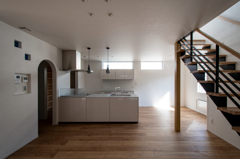 施工事例 三角屋根の家【札幌市清田区】 三角屋根が可愛らしい外観。ツートーンのガルバを縦と横で張り分けました。 玄関脇の壁は一部木格子にして、リビングから上がる階段がチラリと見えます。 玄関入って左手にはシューズボックス。正面窓からは目線が抜けて空間が広く感じます。 リビングから見た鉄骨階段。吹抜けの窓からの光が心地よい。 テレビ側の壁にはエコカラットを採用してアクセントに。間接照明が凹凸を際立たせます。 キッチンはクリスタルカウンターのTOTO「ザ・クラッソ」。ホワイトで統一してすっきりとした印象に。 2階こども部屋のデスクカウンター。ペンダントライトは高さ違いでリズミカルにつけました。 三角屋根が可愛らしい外観。ツートーンのガルバを縦と横で張り分けました。 玄関脇の壁は一部木格子にして、リビングから上がる階段がチラリと見えます。 玄関入って左手にはシューズボックス。正面窓からは目線が抜けて空間が広く感じます。 リビングから見た鉄骨階段。吹抜けの窓からの光が心地よい。 テレビ側の壁にはエコカラットを採用してアクセントに。間接照明が凹凸を際立たせます。 キッチンはクリスタルカウンターのTOTO「ザ・クラッソ」。ホワイトで統一してすっきりとした印象に。 2階こども部屋のデスクカウンター。ペンダントライトは高さ違いでリズミカルにつけました。 その他の施工事例 アウトドアリビングのある家【札幌市豊平区月寒】 特別感のある和室に、キッチンが主役の広々リビング。家族が自然に集う空間づくり。 L型キッチンのオープンハウス【札幌市西区山の手】 足る家1.0 歌って奏でて遊べる家【札幌市白石区】 いろいろあるけどやっぱりリビング土間かな【札幌市清田区北野】