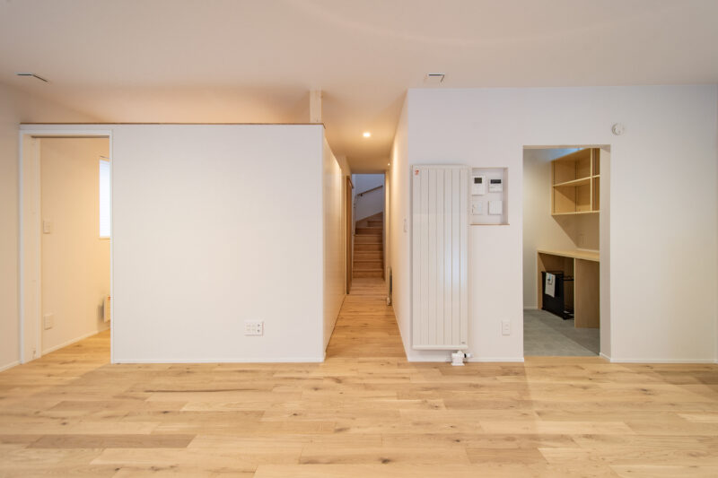 施工事例 心地よい、余白のある暮らし【小樽市新光】 外観は、ゴールドのガルバリウムに、玄関部分は塗り壁で仕上げました。 玄関ホールから廊下に続く扉は、ガラス入りの格子扉で軽やかな印象に。大容量の収納でストック品もたっぷり置けて安心。 玄関から入ると、LDKに繋がる廊下と、洗面所・パントリー・キッチンまで繋がる動線があるので、買い物帰りの動線がスムーズです。 薄いグレーのキッチン。細長いバータイプのタイルを縦に貼るとストライプ模様みたい。 キッチン横のパントリーは、家電カウンターの下をゴミ箱スペースにしてリビングから見えないようにしました。 リビング横の4帖ほどのフリースペースは、書斎や子どもの遊び場などフレキシブルに使えて便利。 外観は、ゴールドのガルバリウムに、玄関部分は塗り壁で仕上げました。 玄関ホールから廊下に続く扉は、ガラス入りの格子扉で軽やかな印象に。大容量の収納でストック品もたっぷり置けて安心。 玄関から入ると、LDKに繋がる廊下と、洗面所・パントリー・キッチンまで繋がる動線があるので、買い物帰りの動線がスムーズです。 薄いグレーのキッチン。細長いバータイプのタイルを縦に貼るとストライプ模様みたい。 キッチン横のパントリーは、家電カウンターの下をゴミ箱スペースにしてリビングから見えないようにしました。 リビング横の4帖ほどのフリースペースは、書斎や子どもの遊び場などフレキシブルに使えて便利。 その他の施工事例 斜めに建つハンドハウス【札幌市清田区】 サロンとファミーユ【札幌市南区澄川】 太陽の光に包まれて、3つの庭を楽しむ住まい。 コンテンツのある家【札幌市南区石山東】 縦格子の階段がある家【札幌市東区東苗穂】 小上がり階段【札幌市北区屯田】